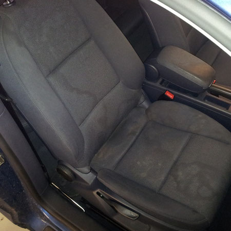 "Bei tiefen Verschmutzungen und hartnäckigen Flecken empfehlen wir besondere Verfahren zur Innenraumreinigung – zum Beispiel Polster schamponieren und Fleckenentfernung. Unter anderen wurden hier Gerüche und Tierhaare entfernt."